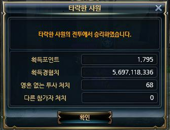 맵 단계 5 | 1등 | 타락한 최고급 상자 | 최상급 합성쟈드 상자2 | 1 |