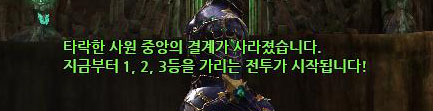 [모든 지역이 붕괴되기 전에 맵 중앙의 결계로 진입하면 데미지를 입습니다.]
