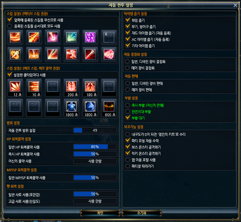 - '파티장 따라가기'가 체크되면, 파티장을 따라가면서 자동 전투를 수행합니다.